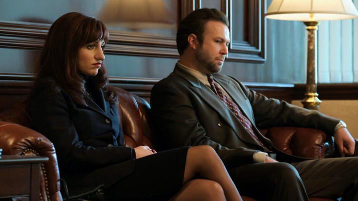 Что до Клайва Оуэна и Бини Фелдштейн, то их выступлениям нельзя дать определения, которое бы устроило каждого зрителя. Оуэн кажется чуть выше, чем был Клинтон, но зато как же точно он передает все его манеры, долгие взгляды и… как правдоподобно выглядит его нос, конечно же. Фелдштейн кажется и вовсе непохожей на Левински, но все нивелируется самим отношением Бини к своему персонажу и пониманию того, что из себя представляла Моника. Да и так ли уж необходимо зеркальное сходство, если ты перестаешь думать о внешности актрисы уже к концу первого эпизода? Есть замечательно выдержанные и гармоничные образы, в связь и увлеченность друг другом которых ты все-таки веришь, а дальше дело уже за историей и, разумеется, за необходимыми флешбэками эпохи вроде объятий Клинтона и Левински в толпе или берета Моники. Без этого, понятное дело, никак и никуда.