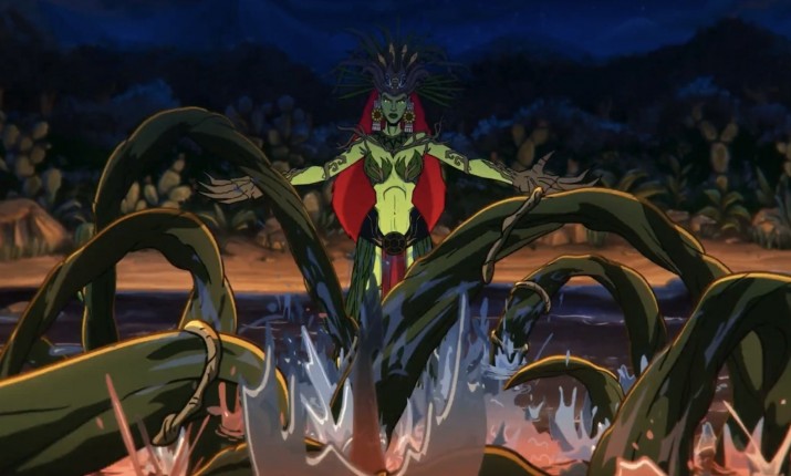 Получается, что в этом мультфильме, как и в комиксах, Бэтмен в качестве супергероя рождается после убийства отца. Путь, который молодой Йохуалли Коатль проходит, чтобы стать настоящим воином, вдохновляет и увлекает. Темному рыцарю было бы легко позволить мести взять над собой верх, но Йохуалли, как истинный герой, стоит выше этого. Хотя Бэтмен является ключевым персонажем, как мы уже упоминали, в проекте есть версии других культовых комиксовых героев. Самый важный из них — Двуликий, который здесь предстает в виде вышеупомянутого Кортеса. И эта версия Двуликого холодная, манипулятивная и довольно тревожащая. За считанные секунды из харизматичного лидера Эрнан превращается в образец мерзости и бесчеловечности.