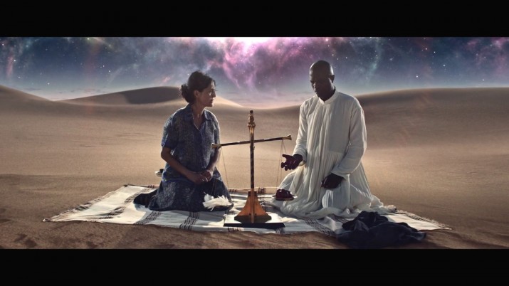 Пожилая женщина с Ближнего Востока, готовя еду для родственников, встала на шаткий стул и потянулась за одним из ингредиентов, который стоял на очень высокой полке. Стул качнулся, и она чуть было не упала, когда в дверь постучали. Вошедший убийственно спокойный мужчина объяснил вмиг погрустневшей даме, что стульчик все-таки опрокинулся, она умерла, а он сам — Анубис, проводник в мир мертвых, и именно он отведет ее в загробный мир, предварительно проведя все положенные процедуры. Так двое спутников отправляются в последнюю прогулку. В данной сцене очень много метафизической философии и совершенно завораживающе показан переход из мира живых на другую сторону. Особенно зрелищным получился суд, когда вырванное из груди сердце кладется на весы, на второй чаше которых лежит перо, и по результатам взвешивания определяется дальнейшая судьба души человека.