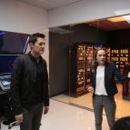 на 24:00 когда Боу, Тэйт и Гэри Вайз сидят в машине. Тэйт выходит со стороны пассажира, обходит машину разговаривает и идет направо от машины, к дому. А уже после, где-то на 25:30, он идет к машине с противоположной стороны, уходя от этого же дома(со стороны пассажира).