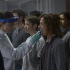 Это просто "жесть и дичь" в одном флаконе: уложив positive тест-пробирки в чемоданчик, куколка из ЦКЗ (центр по контролю заболеваний) просто вытирает себе лобик над бровью рукой в той же перчатке.